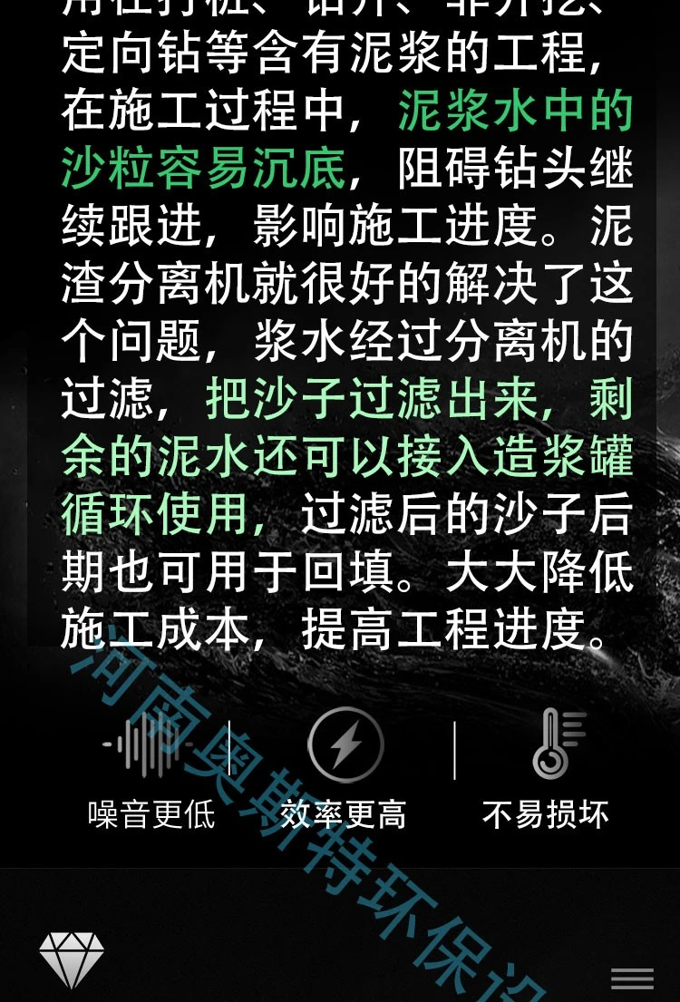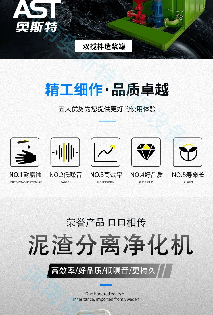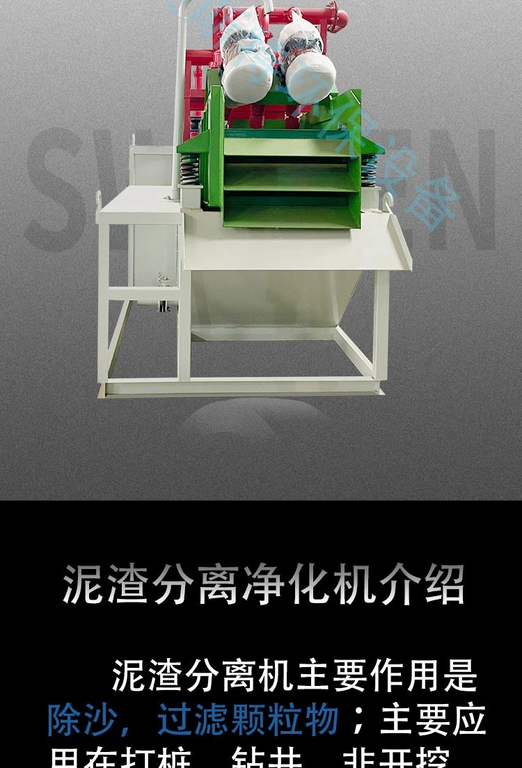 非开挖定向钻泥浆处理机有两个组成部分——泥渣分离机和造浆罐。主要适用于非开挖定向钻、泥浆固壁、循环钻进工艺的大口径桩基及防渗墙工程;适用于采用泥浆护壁,循环钻进工艺的桩基工程(包括旋挖钻、冲击钻等)。